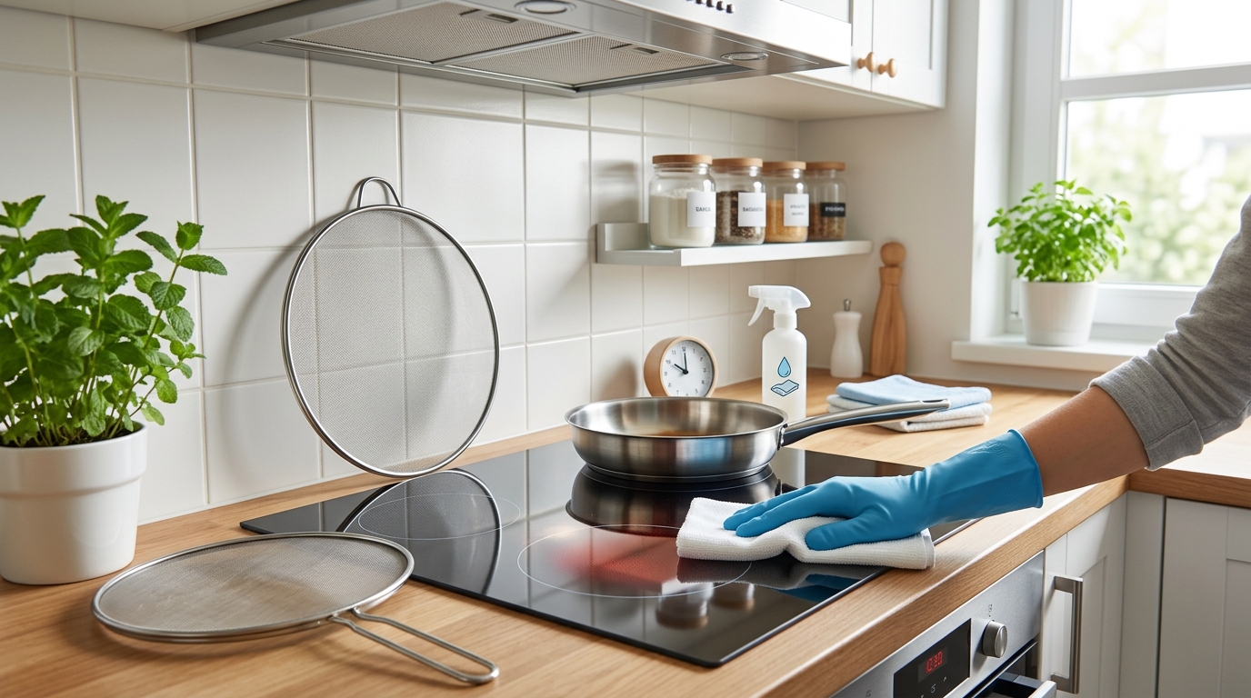 ポイント:これらのアイテムを使うことで、そもそもキッチンへの油の飛散量を大幅に減らすことができます。結果として、拭き掃除の手間も格段に減るでしょう。